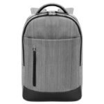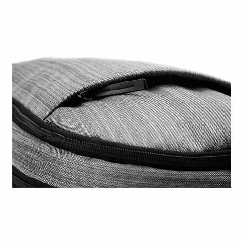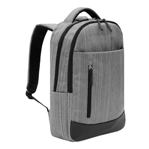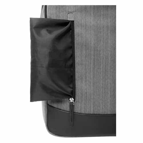Capacidad 11 litros. Polyester 600D Snow: resistente al agua. Mochila con detalle en símil cuero en la parte inferior. Dos bolsillos externos, uno superior y otro en el costado izquierdo. Dos compartimentos, el principal con porta laptop acolchado, porta tablet y un bolsillo pequeño. El segundo compartimento tiene dos bolsillos, dos porta bolígrafos y dos bolsillos de red. Correas acolchadas. Los tiradores de cierre son de símil cuero.